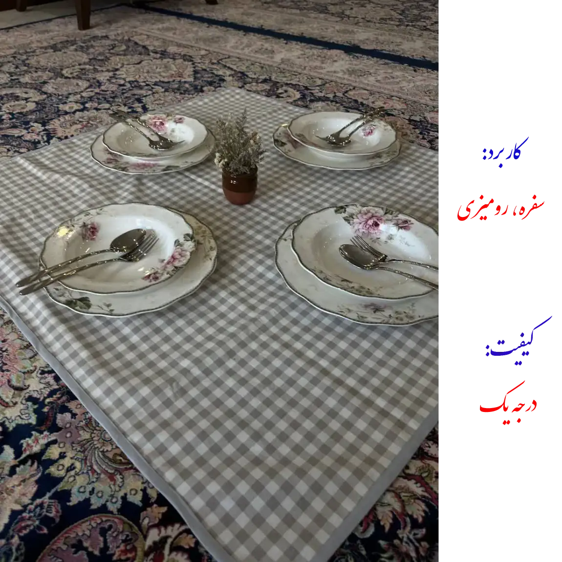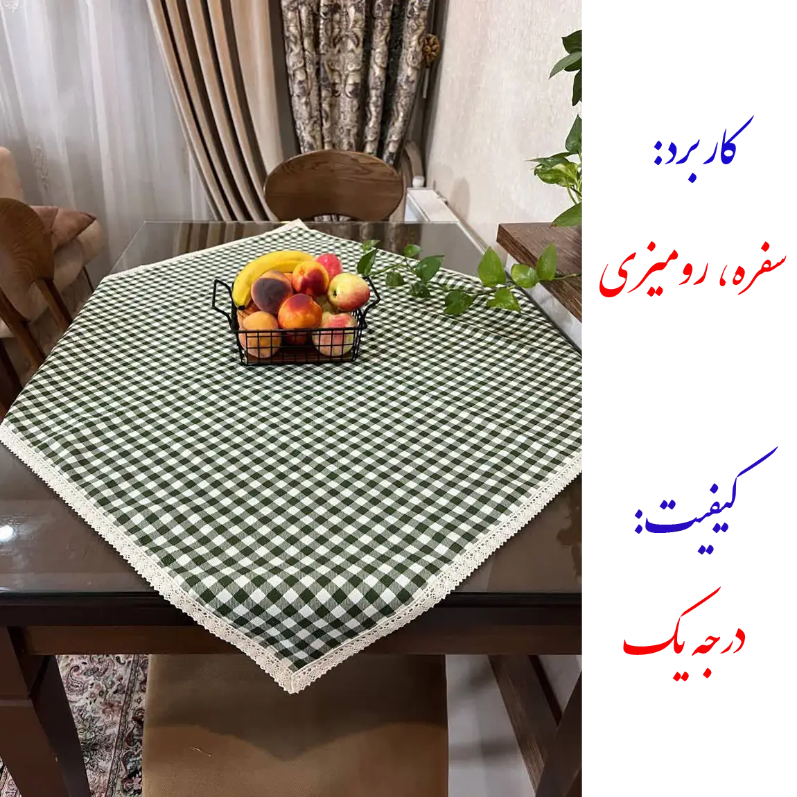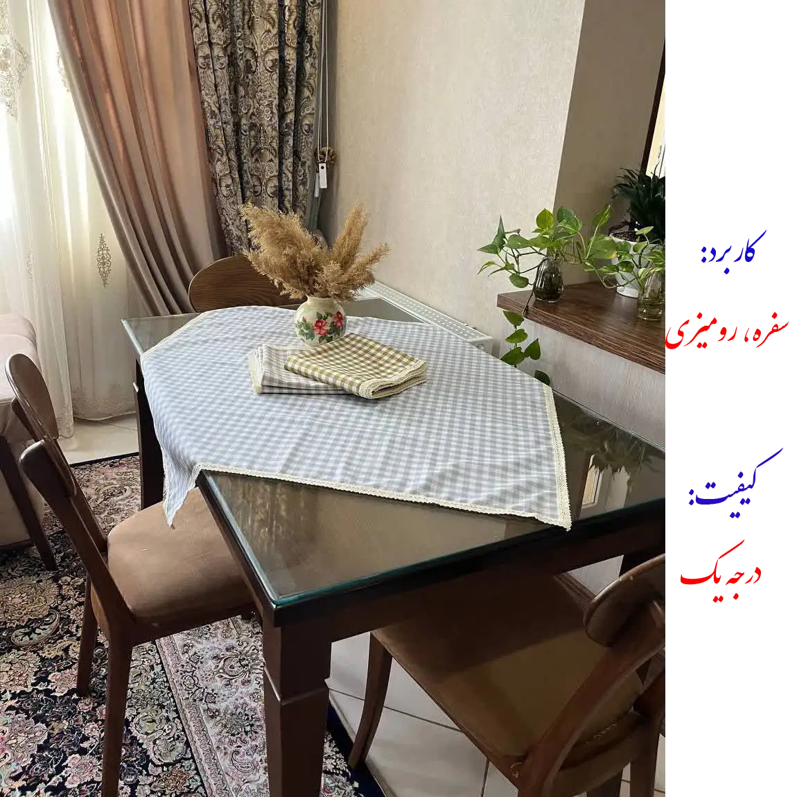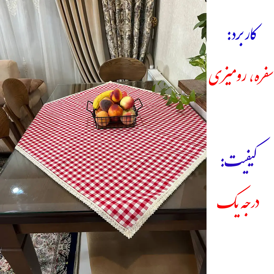 این سفره که هم کاربرد سفره و هم رومیزی دارد از پارچه کتان با فناوری نانو تولید شده است. دارای خاصیت ضد آب برای دفع سریع مایعات است و تمیز کردن و پاک کردن لکه های بسیار آسان است. بسیار نرم با حس طبیعی کتان است و در برابر حرارت و گرما (مانند قابلمه و ماهیتابه گرم) مقاوم است. این سفره رنگ ثابت دارد و در برابر شستشو مقاوم است. . ممکن است مقدار کمی نسبت به سایز ذکر شده کوچکتر یا بزرگتر باشد از تلرانس های تولید است.کیفیت بالای آن شما را راضی خواهد کرد. دو طرح داره: طرح چهارخانه و طرح توپی.